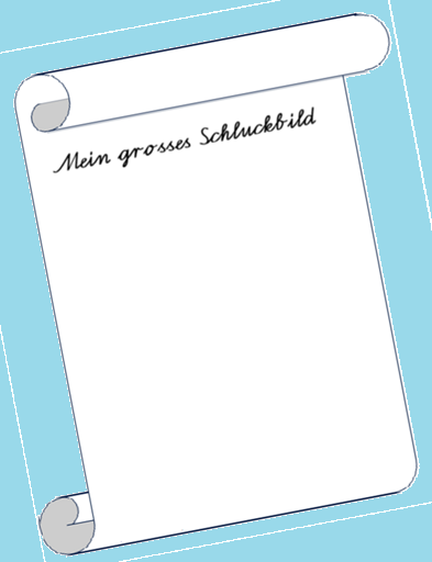 Wenn Du einen P C hast, auf dessen Schirm man schreiben kann, oder ein I-Pad, dann kannst Du hier gleich ein Bild vom Schlucken malen. Sonst nimm ein Stück Papier odere Pappe und ein Bündel Filzer; na, oder Papier und Bleistift. Die Kinder auf der nächsten Seite sind grade dabei! Viel Spass! Und wir brauchen das Bild nachher! Das Kind mit den "roten Streifen" macht übrigens noch etwas vor: Auf seinem Arm steht 1/2 was bedeutet, das die Essübungen jetzt für die Hälfte von allem Essen und Trinken gelten.
