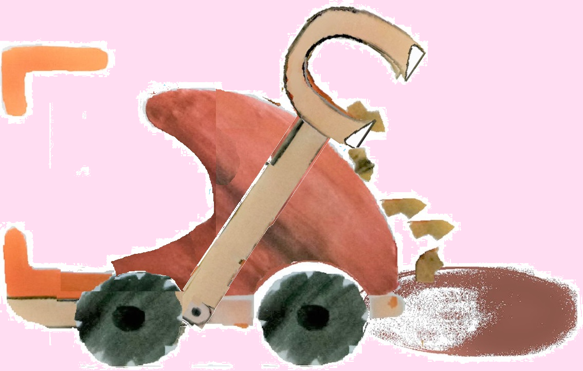 1. Der Schaufelbagger läd die Brocken auf (-die Zunge)2.Hoch geht die Schaufel mit den Brocken (-die Zunge) 3.Und: Schwung, kommt das Ganze hinten ins Loch- in Richtung Magen (von der Zunge eingefüllt)